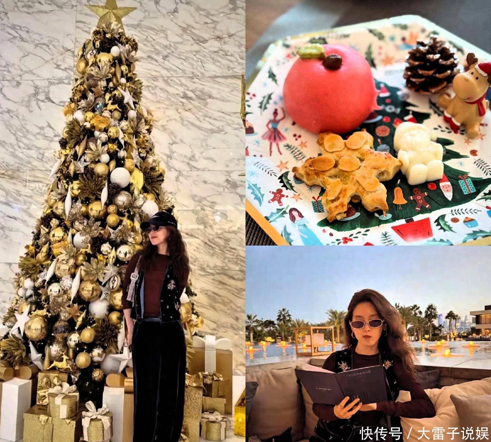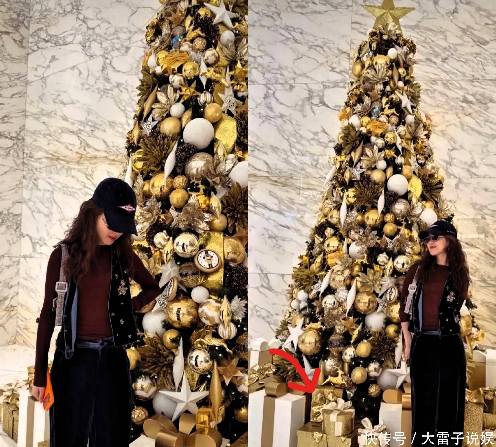 最引眼球的是章泽天和流光溢彩圣诞树的合影,树下堆满各种精致的礼盒,奢华场景和她优雅气质很配。